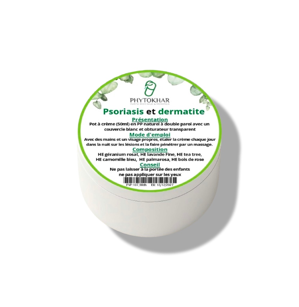 La crème Psoriasis et dermatite est un soin dermatologique pour le traitement des symptômes du psoriasis et dermatite tels que: Dermatite atopique (eczéma atopique), Dermatite de contact irritative/allergique,